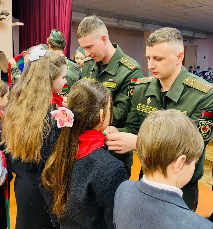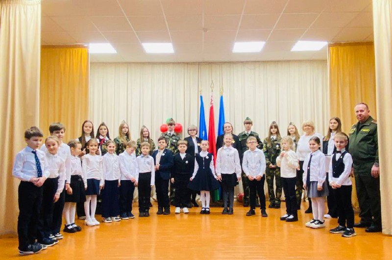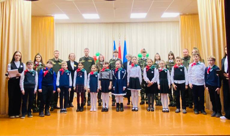 В торжественной обстановке руководство школы и гости мероприятия — офицеры Минской военной комендатуры Вооруженных Сил Республики Беларусь, прикрепили октябрятские значки учащимся 2-х классов и повязали пионерские галстуки учащимся 4-х классов.