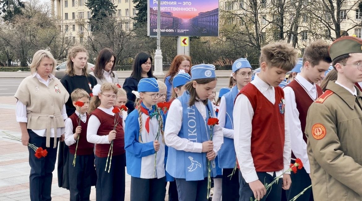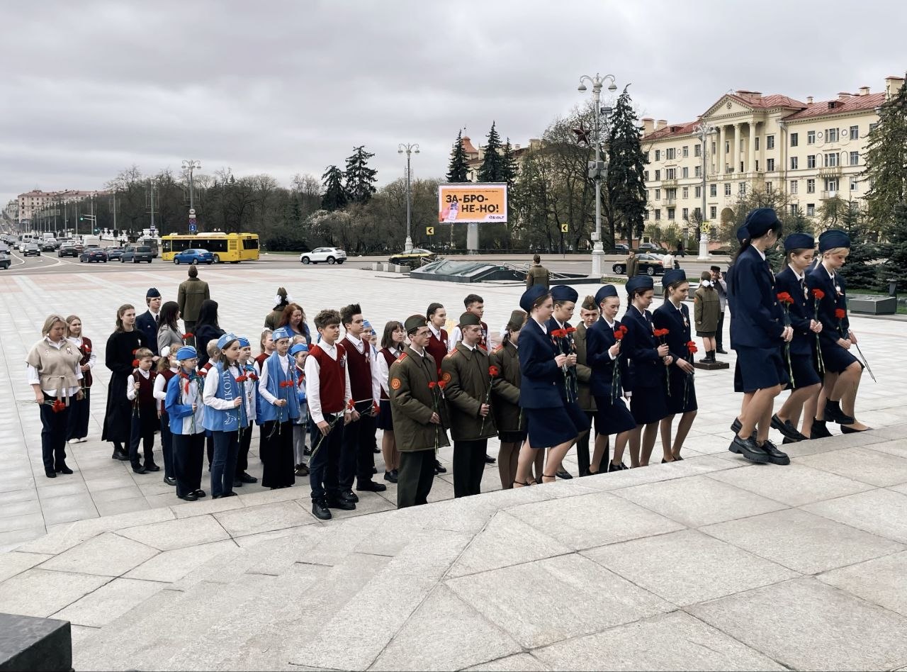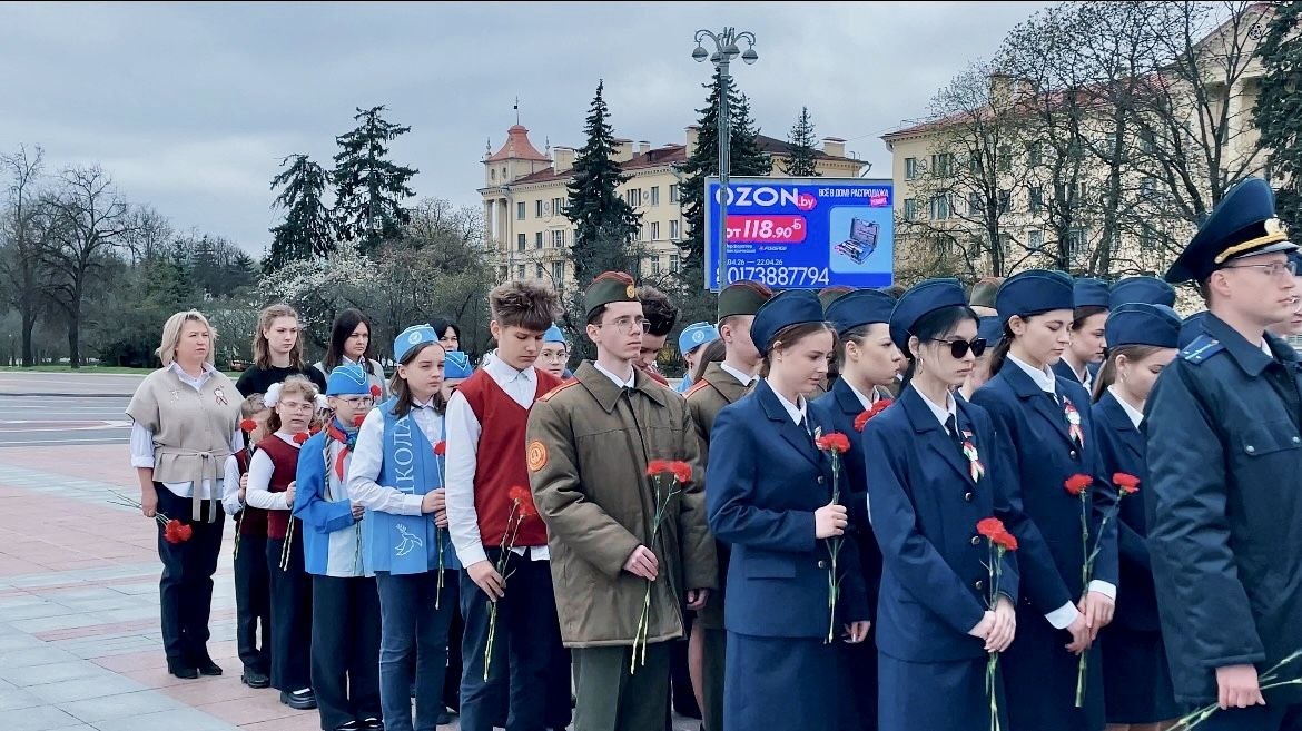 24.04.2026В преддверии Дня Победы учащиеся, педагоги гимназии 38 г.Минска имени Н.А. Шугаева, а также сотрудники прокуратуры Первомайского района г. Минска приняли участие в торжественной церемонии возложения цветов к монументу Победы. Представили прокуратуры, педагоги, члены ОО БРСМ и БРПО, представители Школы мира, а также учащиеся 10 "А" и 11 "А" классов «Юный прокурор», учащиеся, несущие Почетную Вахту Памяти, почтили память павших в годы Великой Отечественной войны, память тех, кто сражался за мир и свободу нашей страны. Важность сохранения исторической памяти, памяти о самой страшной странице из истории белорусского народа осознают и учащиеся 9-10 классов гимназии, которые сегодня продолжили нести Почетную Вахту Памяти.